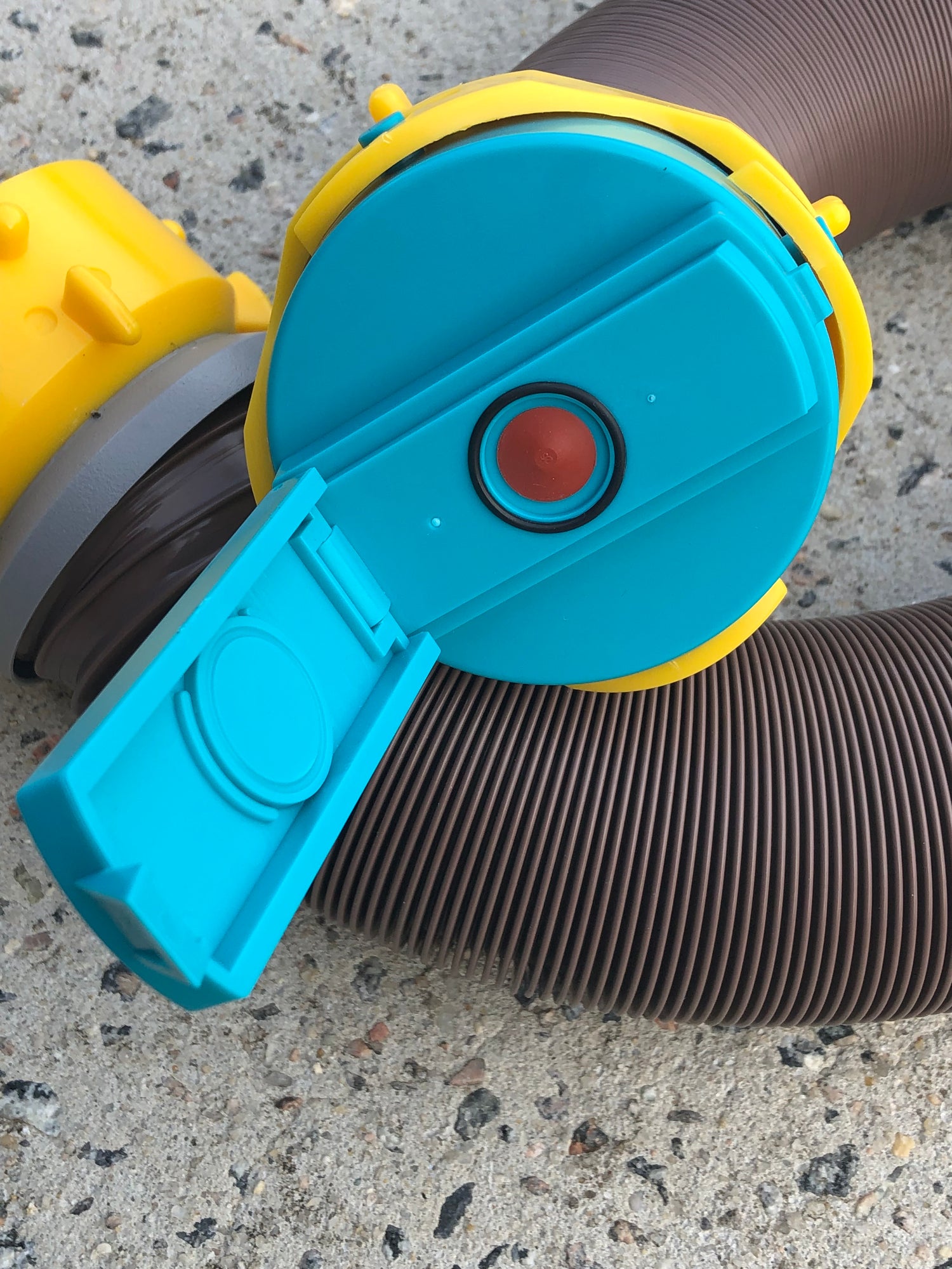 Our least favorite job on the road was the cleaning, compressing, and storing of the RV sewer hose, so we went on a hunt to find a cleaner, easier, faster way to get moving again. When we found nothing on the market, we decided to create that solution ourselves.